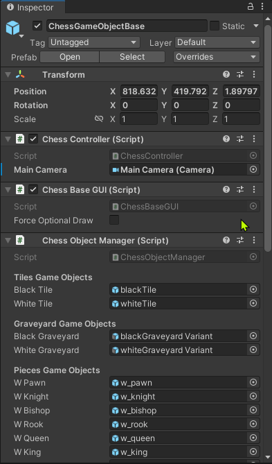 -The most basic group of script components needed to kick start a chess game. Sound effect is nested within its hierachy.&#x20;